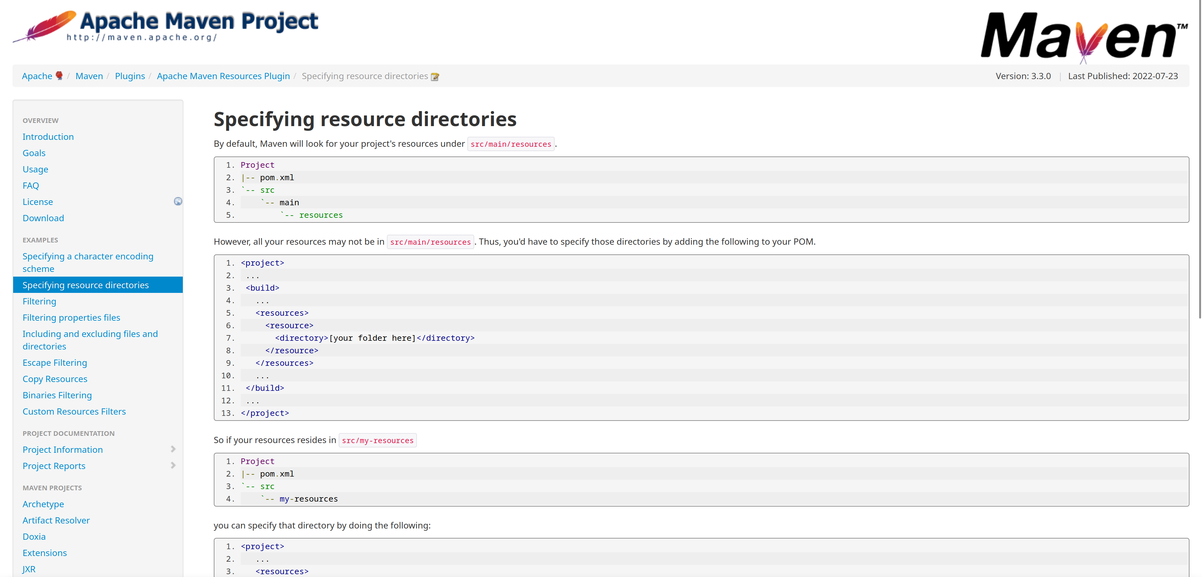 可以看到Maven项目会默认从这个位置寻找资源。并且允许我们在pom文件中配置我们自己的资源文件夹。