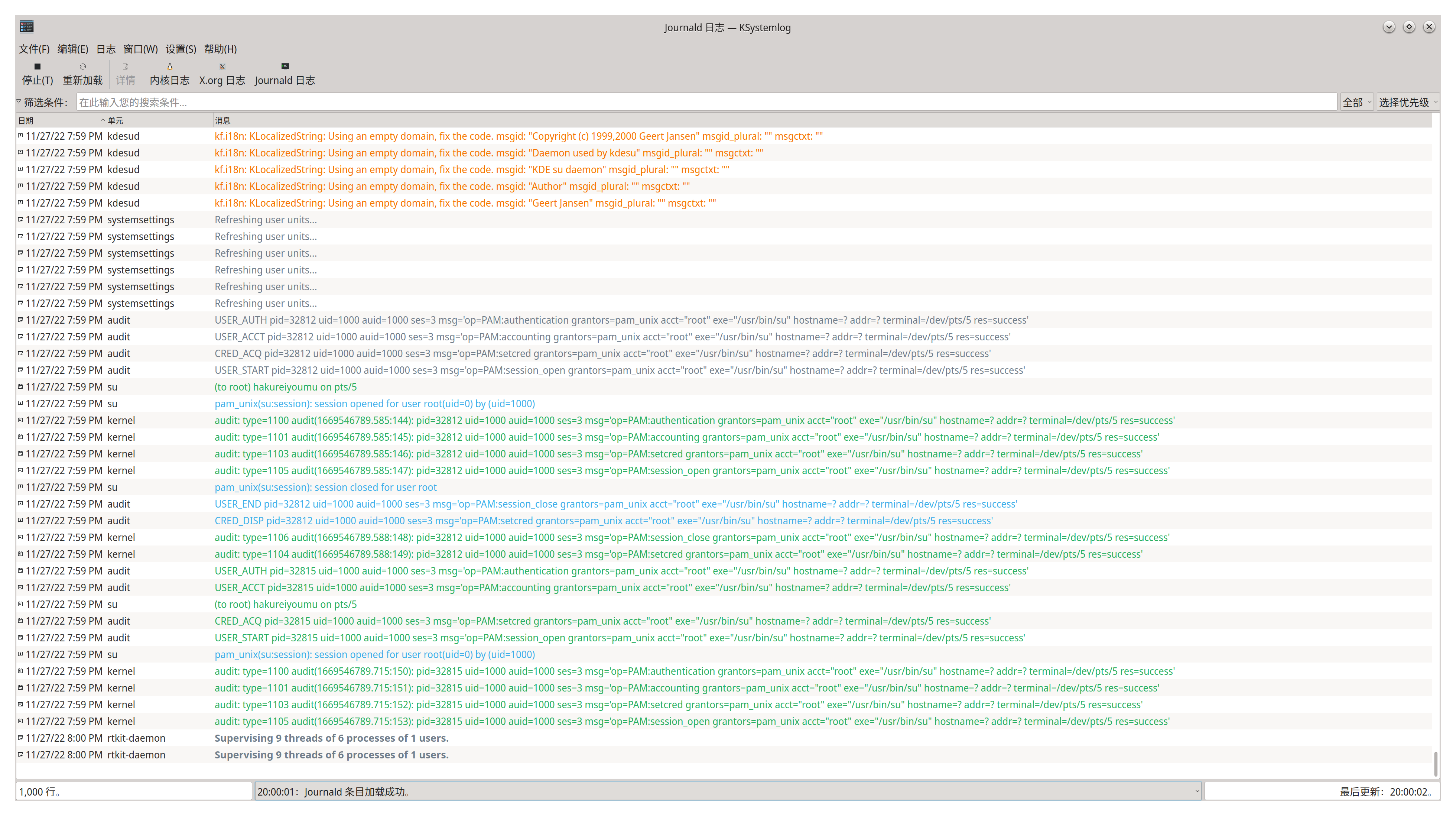 KDE附带的KSystemlog工具可以非常方便的查看各种系统日志。