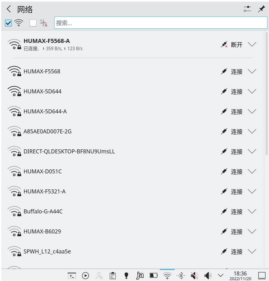 我们安装好了KDE桌面环境后,会带一个图形界面的WiFi连接工具,就不用我们敲命令行了。