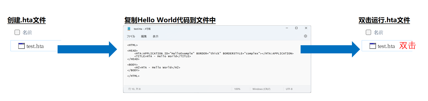 特性3:编写HTA也不需要安装任何其它软件(记事本即可编写)