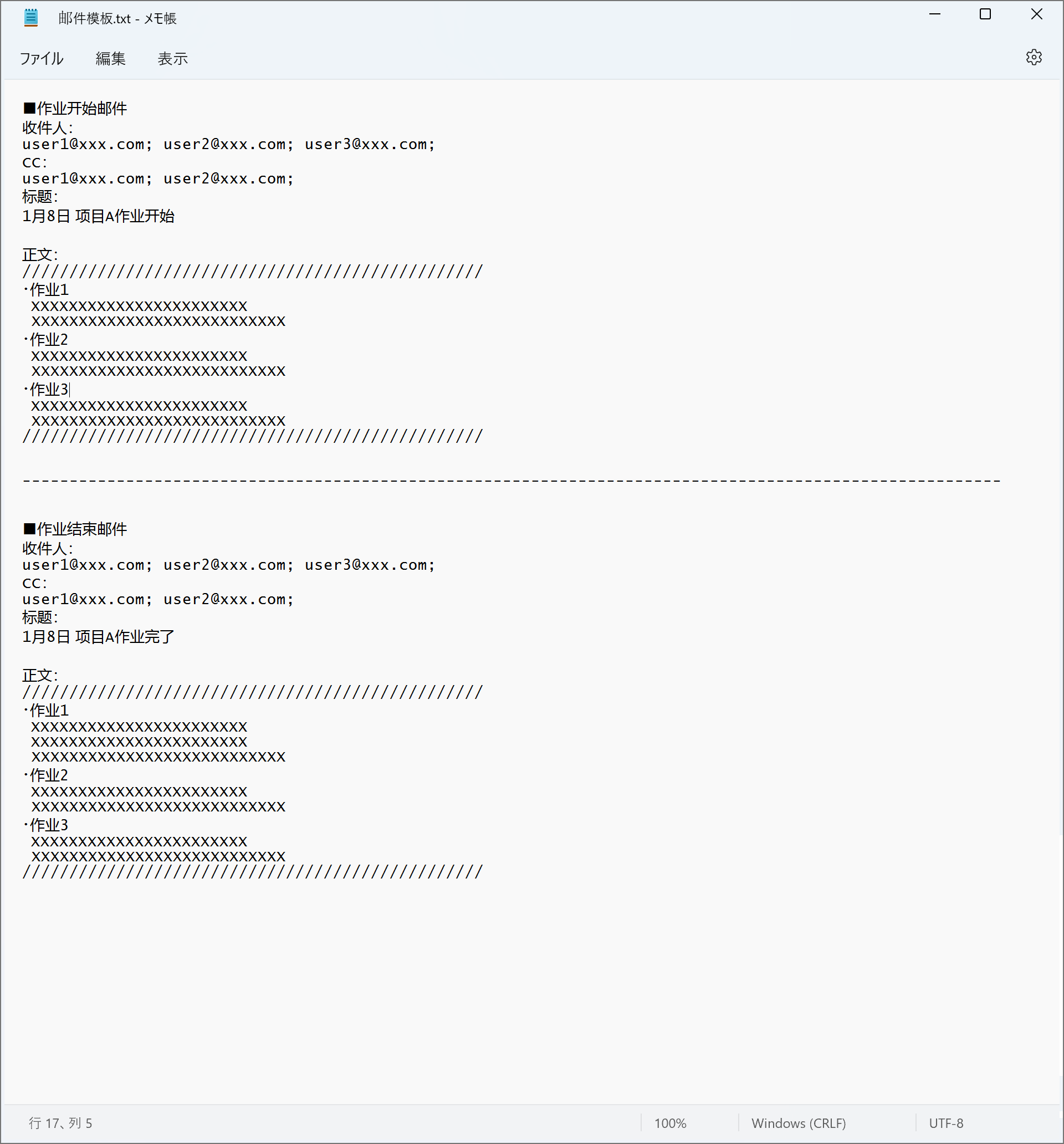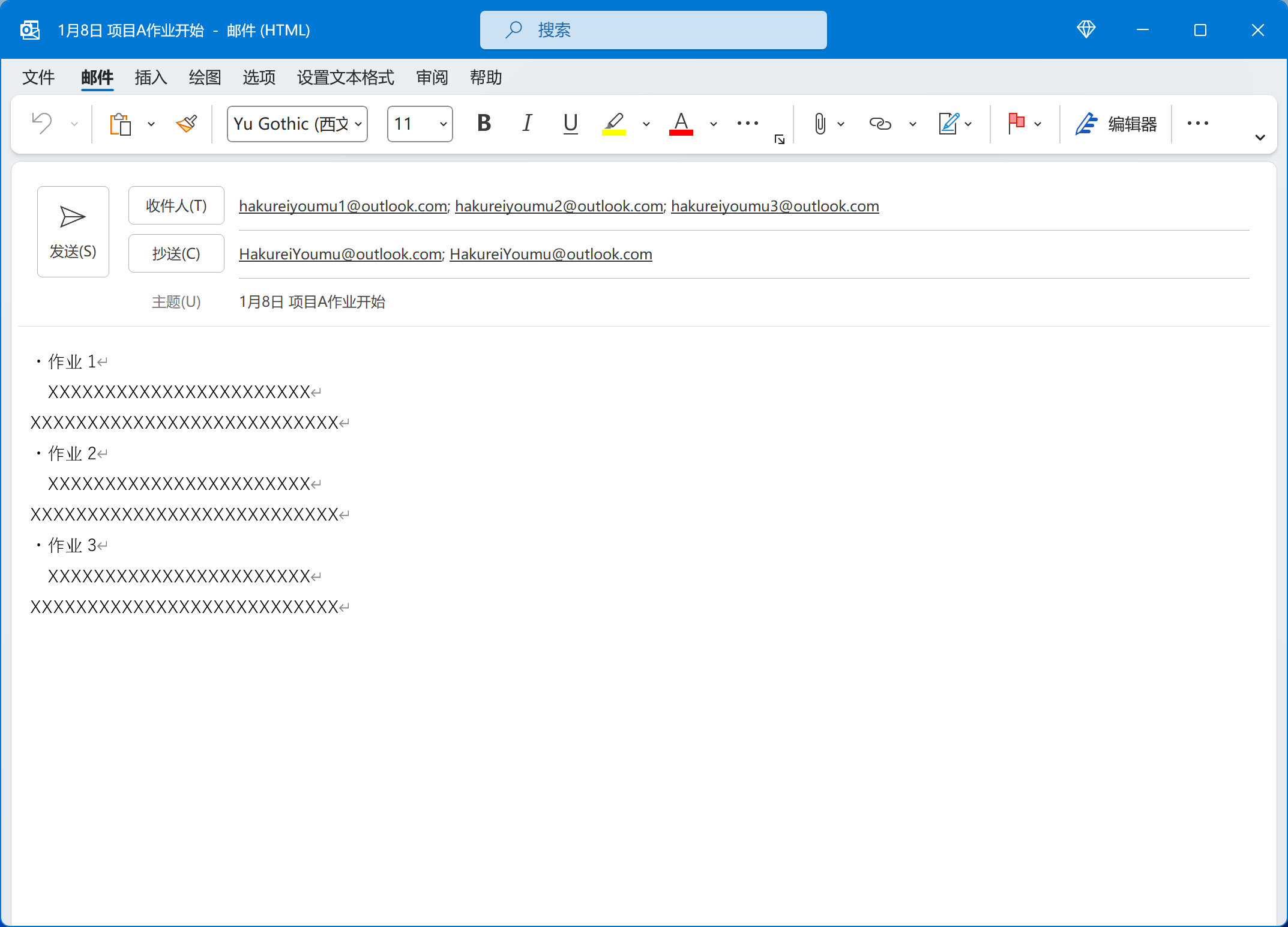 笔者所在的项目组每天都要发送好几封固定格式的邮件,比如下面这些: