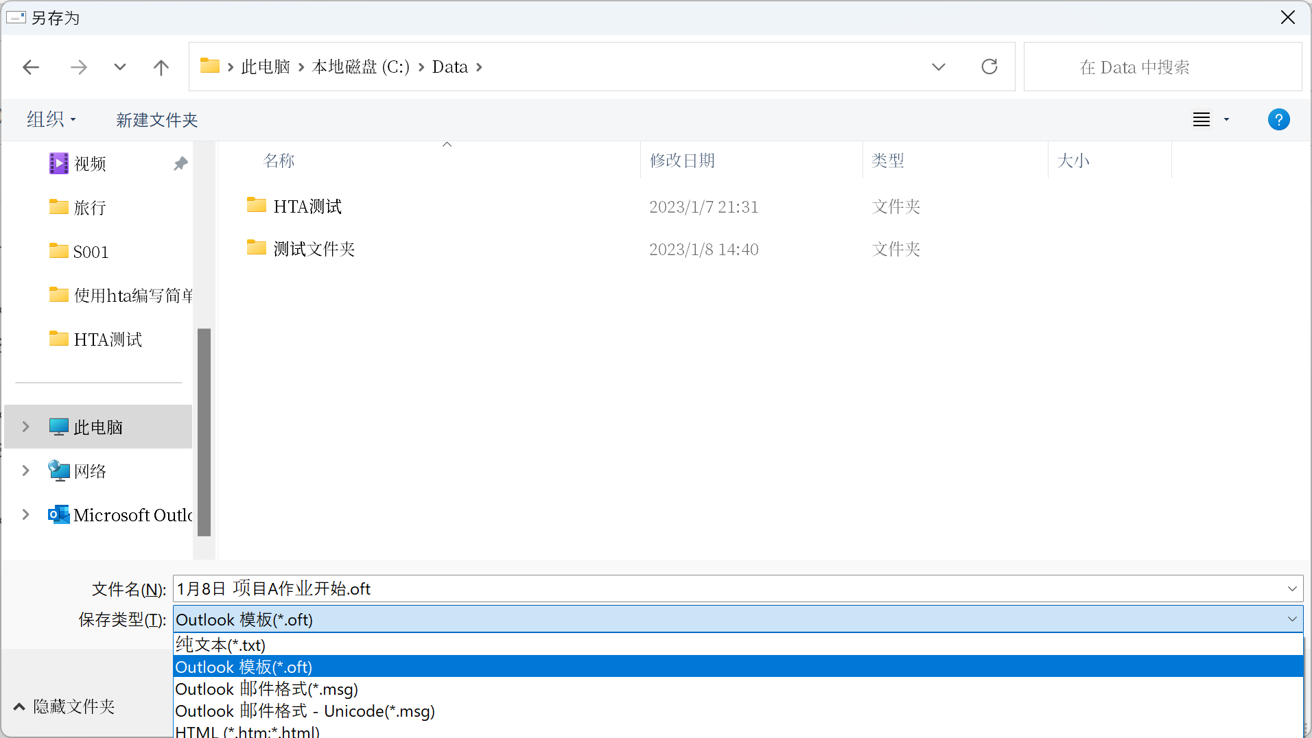 选择【文件】→【另存为】,然后选择保存为【.oft】格式的模板文件。